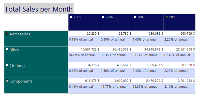 Goal: Implementing an OLAP cube and developing a varied set of reports, dashboards and dynamic analyses on top of both the cube and the data warehouse.
