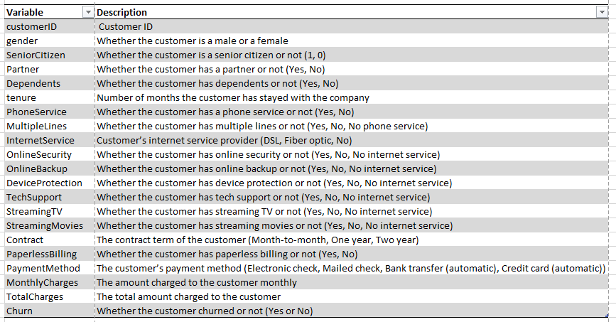 Data: Groups were given a dataset containing customer and service information, plus whether the client churned or not.